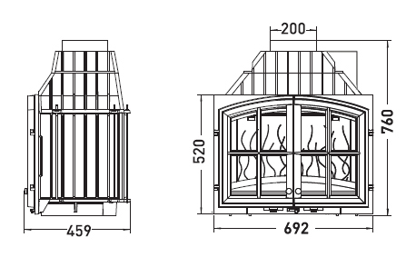 Топка для камина, выполненная из чугуна, что позволяет ей накапливать и аккумулировать тепло для последующей его отдачи, предназначена для пристенного камина. Удобство при использовании данной модели обеспечивают две дверцы с оригинальными ручками. Имеются две дверцы (распашные). Стекло дополнительно усилено, высокий дымосборник. Стекло огнеупорное, способно выдержать температуру до 750°С. Регулировка подачи воздуха в камеру сгорания. Каминная топка Инвикта Дабл Порте 700 с распашными дверцами - оригинальный вариант для любого интерьера. Ступенчатый дымосборник отводит газы в дымоход, способствует теплообмену. Колосник, дефлектор, задняя стенка топки и ограничитель для дров съемные, что позволяет легко заменять детали без разборки камина, при механических повреждениях.